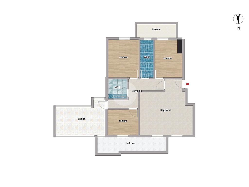 L’immobile si compone di: ingresso, ampio salone doppio, cucina abitabile, tre camere da letto, un servizio con vasca e un secondo servizio con doccia. Completa la proprietà un posto auto assegnato all’interno degli spazi condominiali.